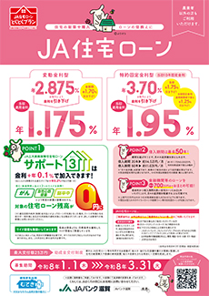 JAバンクは皆さまの暮らしに役立つ、身近で便利な総合金融機関です。